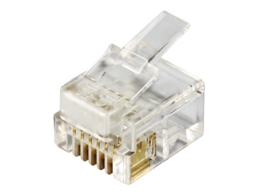 RJ12 Modular Crimp Round Solid Plug For Voice Applications, High Quality Pin With 50um Gold Plating, Low Contact Resistance, ACA Approved, 6 Position 4 Contact, Quantity Of 100 Per Pack