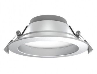 18W LED Premier downlight; 135mm cut-out, 63mm depth; remote constant current trailing edge dimmable LED driver, with flex and plug; selectable colour temperature 3000K, 4000K, 5700K; IP64 aluminium body with silver powder coat finish; 5 year residential or 3 year commercial warranty.